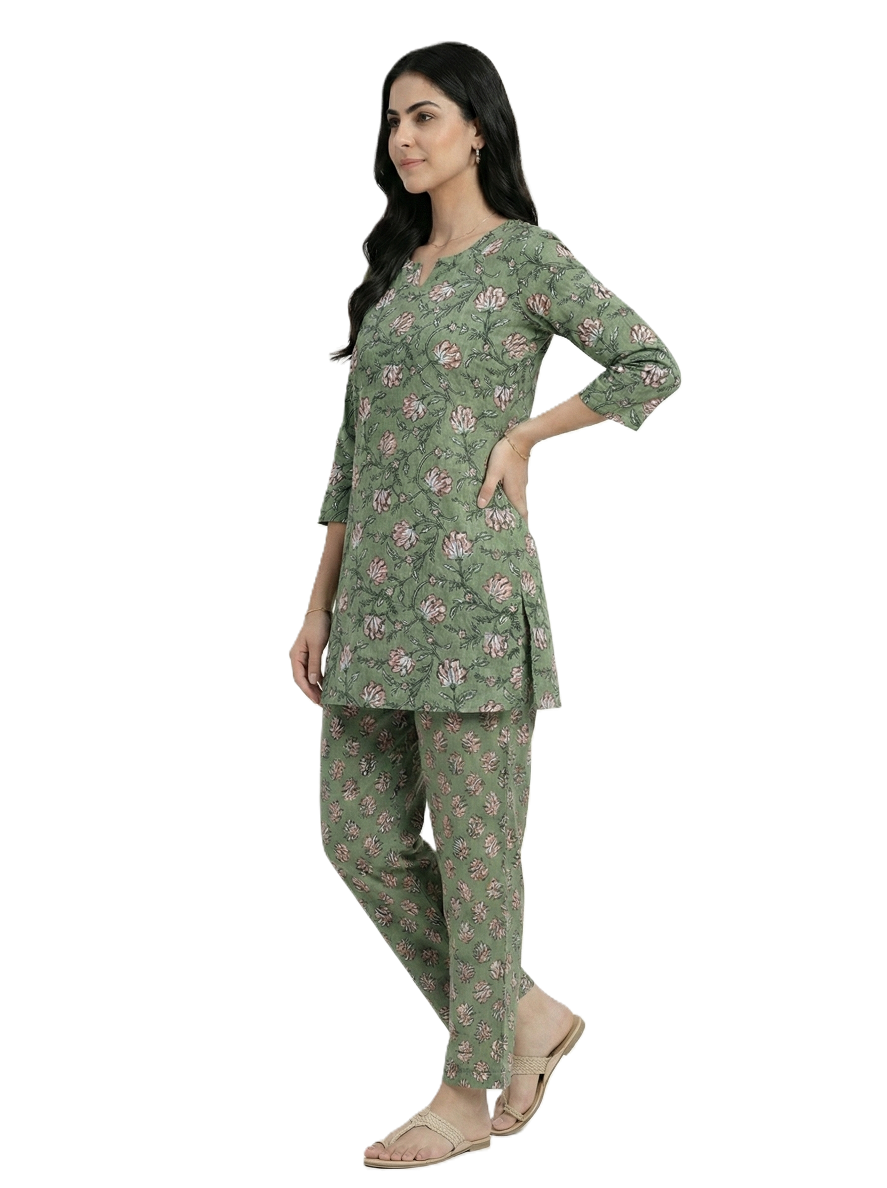 Green & Pink Floral Print Co-ord Set